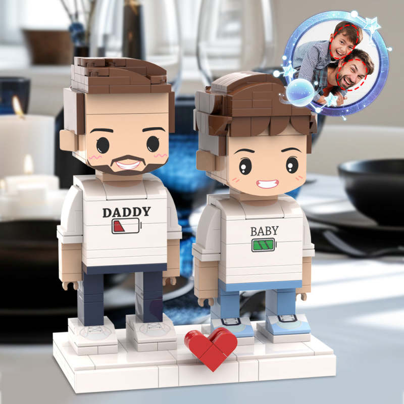Regalo Per La Festa Del Papà Camicia Abbinata Batteria Scarica Testa Personalizzata 2 Persone Figure In Mattoni Personalizzate Per Papà
