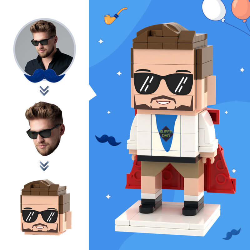Regali per papà Figure in mattoni con testa personalizzata Figure in mattoni di Super papà Giocattolo con blocchi di particelle piccole